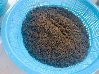 2枚目の写真は、「もずく」です。独特のぬめりがあり、スープにいれるととろみが出ます。