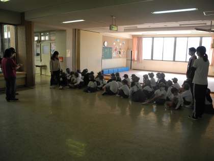 子どもたちは緊張してしっかりと取り組み、どのクラスも素早く避難することができました。