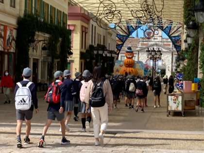 予定より早くスペイン村に到着しました。例年に比べて空いています。記念写真を撮って班活動に入ります。