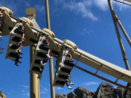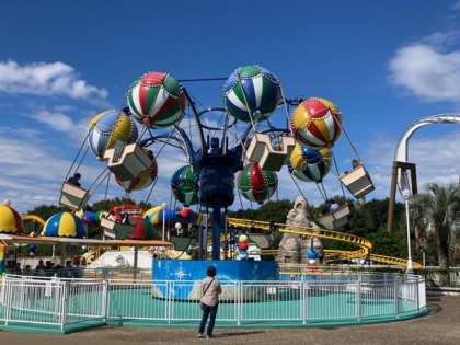 フィエスタ広場には、「ピレネー」「スウィングサンタマリア」「アミーゴバルーン」など、たくさんのアトラクションがあります。活動班で相談して楽しんでいます。