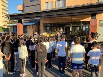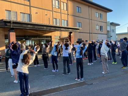 朝の集いに全員元気に参加しました。今日の予定を確認し、朝の体操をしました。