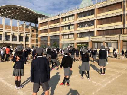 爽やかな天気のなか、児童集会が運動場で行われました。運動場いっぱいに広がって。ゲームを楽しみました。
