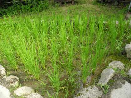 6月に5年生が植えたもち米の苗が、すくすくと育っています。
