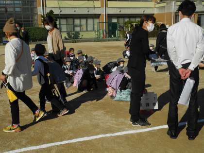 また、引き渡し訓練は、外でおこなうのは初めてです。最終児童の確認まで約20分間で終了することができました。ご協力ありがとうございました。