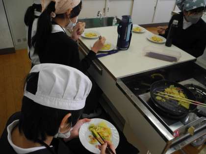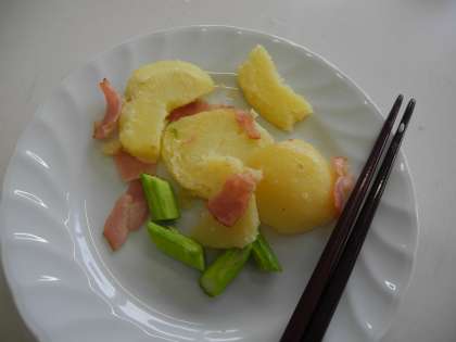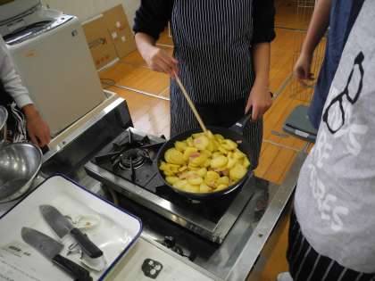 6年生は、調理実習でベーコンポテトを作りました。ジャガイモを丁寧にむいてベーコンとアスパラを炒めました。