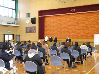 来年度の新1年生にむけた「入学説明会」がおこなわれました。入学式(4月7日金)のことや、入学までの準備物、登校班、学校給食、いきいき活動などの話しがありました。4月にかわいい1年生との出会いが楽しみです。
