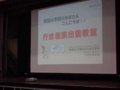 6年生は行政相談出前教室で国の仕事について学びました。行政とは、みんなが安心して幸せに暮らすための仕事です。行政相談員は、大阪市内に約60人います。何か困ったことがあったら行政相談員に相談しましょう。