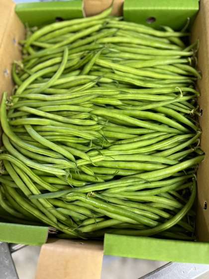 「さんどまめとコーンのソテー」は、サラダ油でさんどまめとコーンを炒めて、塩こしょうで味付けをしています。きょうは、生のさんどまめを調理しています。