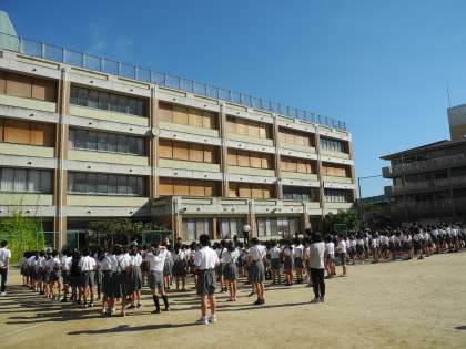 久しぶりの青天の中での児童朝会。みんなピリッとしてました。