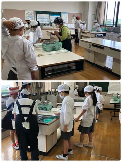 にんじん、ブロッコリーやほうれん草を使って、茹で野菜サラダを作りました。地域の生涯学習ルームの方たちにお手伝い頂き、子どもたちは安全に調理実習が出来ました。