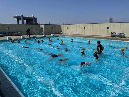さて、1年生は『ポニョ』の音楽にのって、今日も楽しそうに水慣れ・水遊びをしていました。水の上で『クラゲさん』『ヒトデさん』になったり、プールの底をタッチしたり、できることがどんどん増えていました。