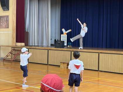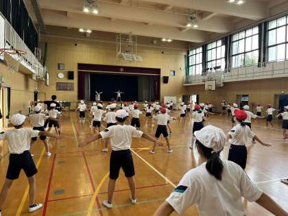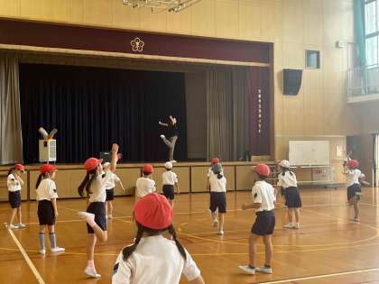 昨年度に引き続き、今年度も八馬先生に来校いただき、ダンス体験を3年生・4年生がしました。このダンスは運動会で披露することになります。運動会に向けて早くもスタートしました。暑い中でしたが、休憩や水分をしっかりと取りながら、子ども達は元気いっぱい楽しみながら、踊っていました。