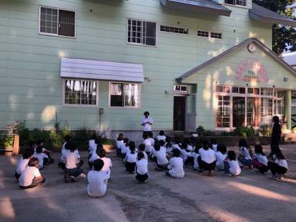 朝の集いです。 ラジオ体操のあと、先生から今日1日の予定と体調の確認が行われました。