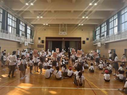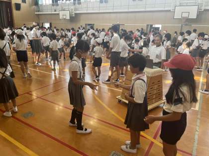 本日の児童集会は久しぶりに講堂で行いました。『王様じゃんけんゲーム』をして、みんなで楽しい時間を過ごしていました。11月のウォークラリーに向けて、どんどんたてわり班で仲良くなって欲しいなと思います。