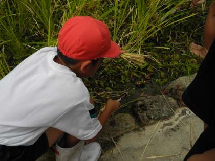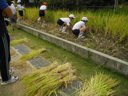 地域の方に教えていただきながら、かまで稲を刈っていきました。よい体験活動になったと思います。