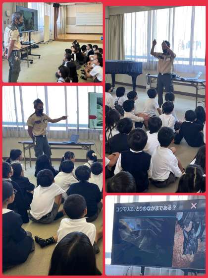 本日は、天王寺動物園の飼育員さんにゲストティーチャーとして来校していただきました。1年生と2年生に、天王寺動物園の動物のことを、クイズを交えながらお話していただき、子ども達は興味津々でお話を聞いていました。