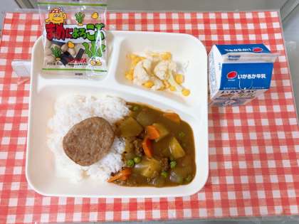 「ハンバーグカレーライス」は、子どもたちにとても人気でした。給食を取りに来た当番さんが、サンプルを見て、目をとても輝かせていました。