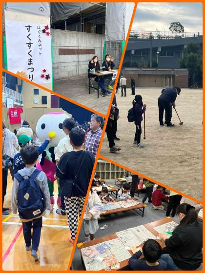 すくすくまつりに鶴見区マスコットキャラクター『つるリップ』も登場して、まつりを盛り上げてくれました。シールづくりとグランドゴルフも子ども達は楽しんでいました。