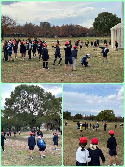 昼食の後、そのまま班ごとに楽しく遊んでいます。異学年でもなかよしの茨田っ子です。