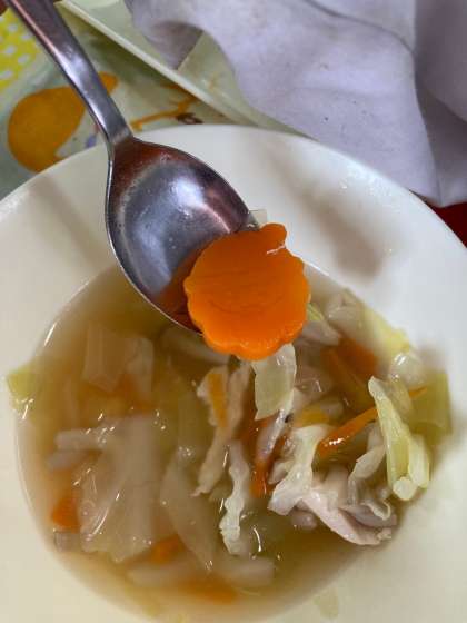 「スープ」には、ラッキーにんじんが入っていました。入っていた子は嬉しそうに、なかった子はとても残念がっていました。