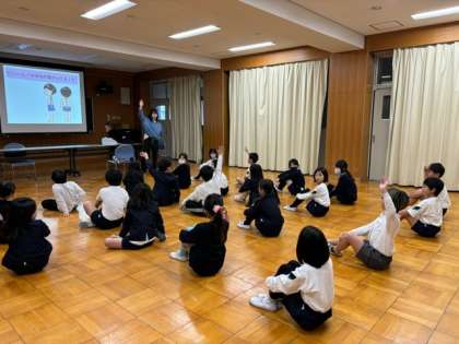 悪い姿勢を続けていると、背骨が曲がってしまったり、内臓が圧迫されて体調が悪くなったり、歯並びや身長の伸び,集中力にも悪い影響があるよ…という話をしました。
