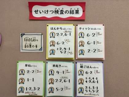 はんかち,ティッシュ,爪のチェックと一緒に、早ね早起き朝ごはんのチェックもしています。