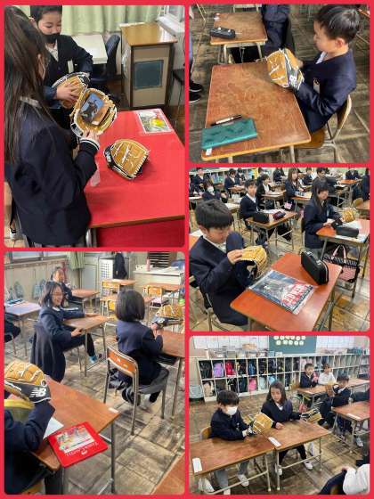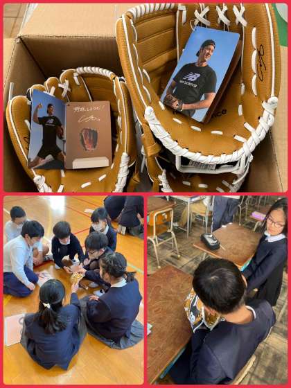 メディアでも話題になっていた大谷選手からの寄贈グローブがついに届きました!木曜日の児童集会で子ども達に紹介した際は、拍手が起こるほどでした。楽しみにしていた子どもが多かったようです。木曜金曜の2日間で、全クラスにグローブを回し、全員が見たり、つけたりして、大喜びでした。初めてグローブをつけた子どもも多かったようです。「野球しようぜ!」の大谷選手の言葉が届いた子も多かったことでしょう。