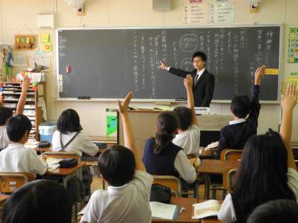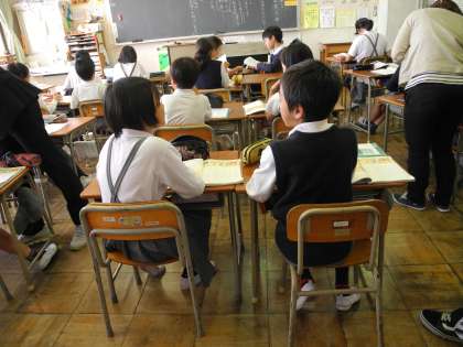 新任の先生が国語科「世界一美しい村へ帰る」の授業をしました。先生になって、初めての授業研究。校内の先生方がたくさん参観しにきているので、緊張しながらも子どもたちは集中して取り組んでいました。