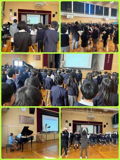 1年生から5年生の子ども達で音楽集会を行いました。卒業生お祝いの会で卒業生に送る歌のプレゼントの練習をしました。短い時間でしたが、どんどん上手になっていました。本番で6年生に気持ちを込めて贈ります。本番が楽しみです。