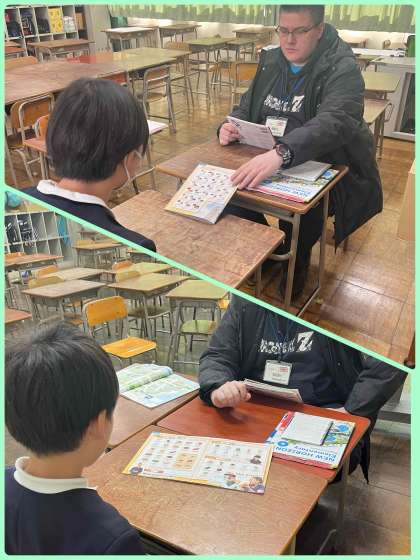 今日は、5・6年生が『パフォーマンステスト』を受けていました。CーNETと1対1で、たくさんの英語による質問を、英語で返答するというテストです。この1年間で習った知識を使って、子ども達はがんばって答えていました。