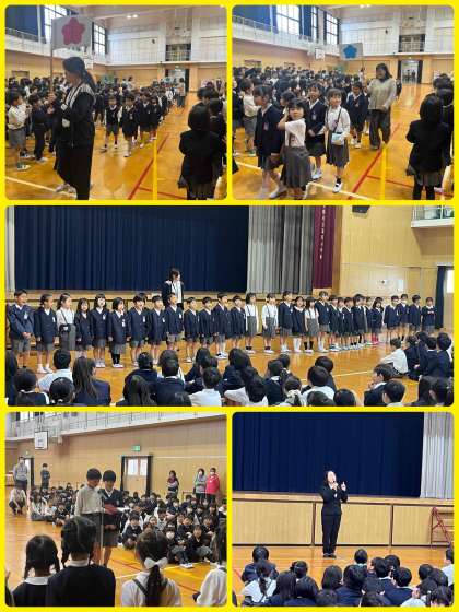 先日入学した1年生が、2年生から6年生までの子ども達と初めて出会う『対面式』を行いました。2年生から6年生の子ども達から1年生へ歓迎の言葉や、校歌『希望のつばさ』の歌のプレゼントをしました。最後に1年生が元気な声で「よろしくおねがいします!」と言うと、温かい拍手につつまれていました。少しずつ小学校生活に慣れていって欲しいです。