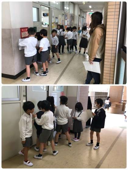 校舎地図を片手に、グループごとで学校内をたんけんしました。