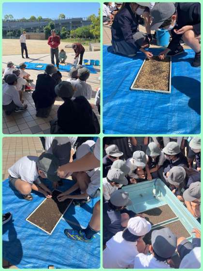 5年生の『米づくり』の取り組みが始まりました。まずは『もみまき』です。しっかりとした苗ができるように、子ども達は心を込めてそっともみをまきました。