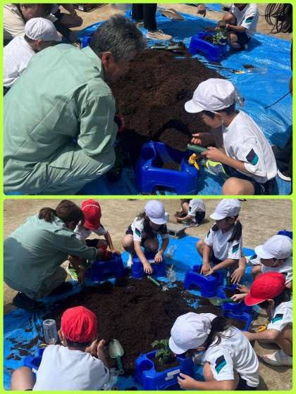 2年生は、生活科の学習でトマトを育てます。今日は苗を植えました。これから毎日しっかりとお世話して、たくさん収穫できるようにして欲しいです。