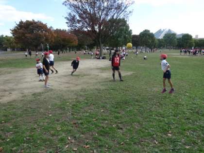 一日中天気がよく、気持ちよい青空の下でいろいろなゲームを楽しみました。縦割りのグループそれぞれが協力し、仲良く活動することができました。