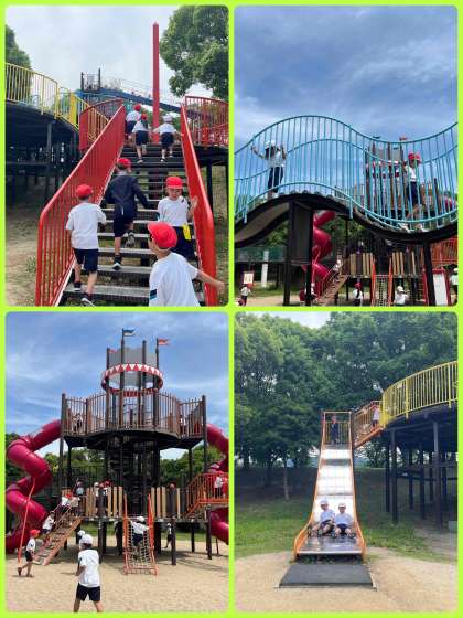 ルールを守って、楽しく遊びました。楽しそうな遊具がたくさんあって、どれで遊ぼうか悩む子もいました。とても楽しくて何回もすべり台をすべる子どももいました。