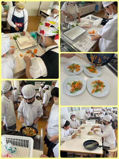 今日の調理実習は、『野菜炒め』でした。みんなで協力して作ることができました。「おいしいー!」とにっこり笑顔で食べていました。