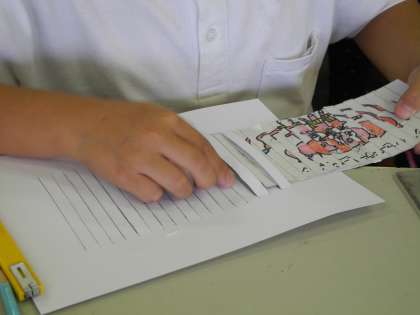 工作クラブは、カッターナイフを使った作品を作っていました。