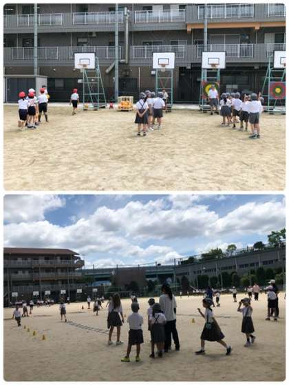 今日は、低学年の子どもたちが、走り幅跳び、PKシュート、ハードル走、バスケットシュートなどの運動を楽しんでいました。