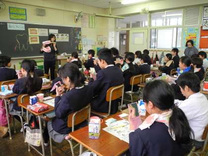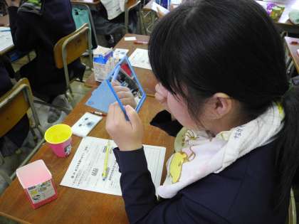 その後、歯垢染色をし、歯と歯の間や歯と歯茎の間など、みがき残しの多かった場所をみんなでみがきました。なんと、6年生では染まらずに白い歯の人がいました。