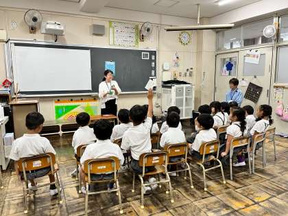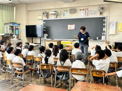今日は鶴見図書館を中心に活動されている。おはなしサークル「でんでんむし」さんが来校され、1〜3年生におはなし会を開いていただきました。