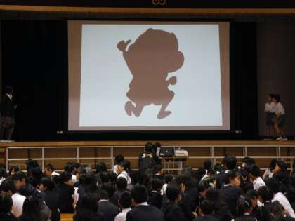 今日の児童集会は、キャラクターのシルエットクイズでした。