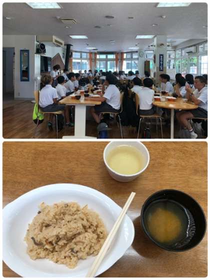 アイスクリームづくりの後、高原遊びをしました。制服に着替えて、少し早いですが宿舎最後の昼食をいただきます。