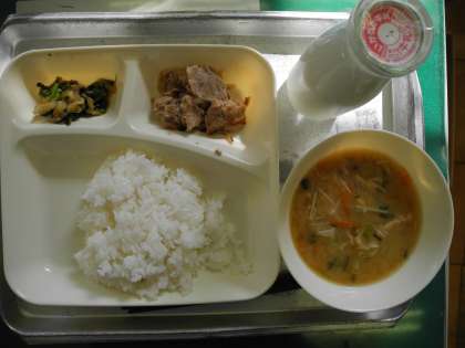 12月の献立では、冬においしくなる野菜がたくさん登場します。今日は、給食で菊菜と白菜のごまあえが出ました。