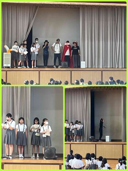 本日の児童集会は、『ひょっこりティーチャー』というゲームでした。音楽に合わせて、仮想して通り過ぎる先生が誰かを当てるゲームでした。子ども達はとても楽しそうにしていました。計画を立てた集会委員会の子ども達も満足そうでした。