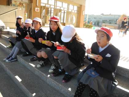 子どもたちは、お家からタッパーと箸を持ってきていたので、出来たてのお餅をそれに入れてもらいました。とってもおいしかったです!