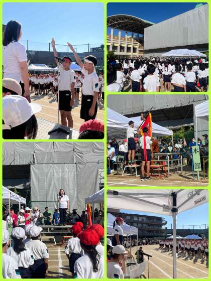 快晴の中、いよいよ運動会が始まりました。みんな元気いっぱい頑張りましょう!