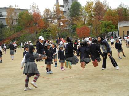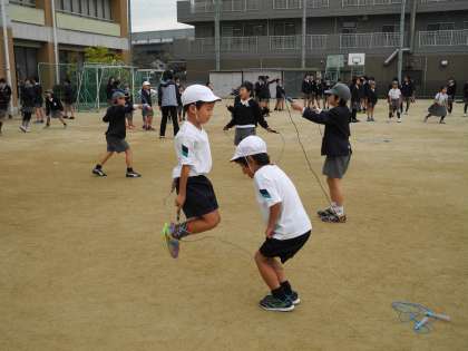 なわとび週間も4日目となりました。20分間休みになると、子どもたちはなわを持って、急いで運動場に集まっていました。