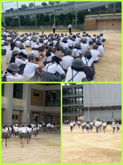 本日は地震・津波を想定した避難訓練を行いました。地震発生後、一旦運動場へ避難し、その後津波警報が出たので、もう1度3階以上の校舎へ避難するという流れで訓練しました。もしもの時に落ち着いて行動できるように、日頃からの訓練が大切になります。子ども達は真剣に訓練に取り組むことができました。今後も定期的に取り組んでいきます。