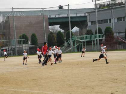 子どもたちは、自分の番がくると力いっぱい全力で走っていました。また、チームの友だちを一生懸命に応援しました。